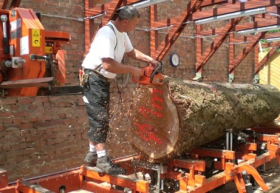 | Verarbeitung von Hölzern mit besonderen Abmessungen mit eigener Bandsäge |
